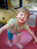 Looking at her eyes is kind of unsettling. Not because of the stitches, which are scabbing over. But because she doesn’t look like herself. For three years we’ve known that her eyelids were droopy, and that the ptosis in her left lid was more severe. But that’s just the way she was. Sometimes her left eye opened more than other times. Now her left eye is open, and open wide. And her right lid, which always seemed normal, now seems like it’s less open than the left. It’s kind of freaking me out. The doctor said that her right lid will probably lower a little as time goes on, but it’s unlikely they’ll be exactly even. It seems so strange to see her eyes uneven now because it wasn’t just the way she was born, it was something that was done to her. It’s great that it was done, because she will be able to see better, but it’s still very unsettling.