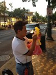 One night while we walked around Waikiki we encountered this balloon artist, to whom Zoe was instantly drawn. He asked what she wanted and said she could basically have anything. She was dumbstruck, so he started offering choices, and had her at princess. He spent easily five to 10 minutes creating this balloon princess. I have never before seen a balloon princess. I was impressed. He said he’s been creating balloon art for 15 years, and that he’s going to attend a balloon art convention in Dallas in the spring, where he will earn a certification in balloon art. Who knew such a thing existed? He did, evidently. Zoe loved Princess Alice and brought her home to introduce her to Ralph (her dog) and her baby doll Eve. Alice lived with us for the rest of the week. Toward the end of the week, unfortunately her face started leaking and got very very very skinny. I should have taken a picture but I didn’t have the heart to. When I told Zoe we couldn’t bring Princess Alice home and that I would have to pop her and throw her away, she was understandably upset. Perhaps that was too cruel? She was a very lovely balloon princess while she lasted.