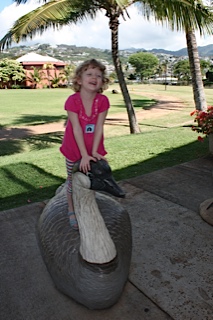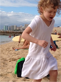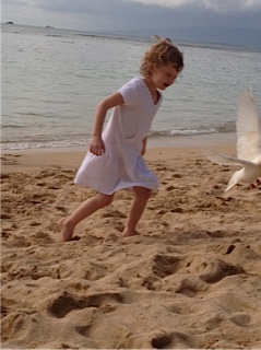 I’m really done now, but here are a few more photos from our trip I couldn’t resist posting. Some are from the children’s museum in Honolulu, which includes rooms representing countries from which many Hawaiians are descended. One is from after the rehearsal dinner when Zoe and I are sitting in the hotel lobby and she’s doing the aloha sign. And a couple are Zoe chasing gulls on the beach at Sans Souci. Now I’m done.