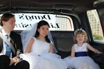 Zoe had never ridden in a limo before (nor had several of the adults present. I told Randy I would take him to prom sometime and get him a limo then). She started out sitting with us but quickly decided that the best seat was in the back, next to the bride. Fortunately, Joanne didn’t seem to mind.