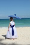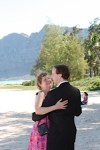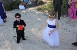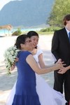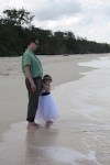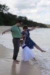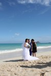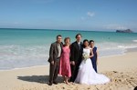 Everyone who wasn’t getting married lounged around the penthouse for a while, taking in the view from the balconies, while Clint and Joanne changed from their Chinese outfits into their traditional Western wedding attire. We went downstairs to wait for the limo, with Zoe instinctively holding up the train of Joanne’s dress all the way. The limo took us to Waimanalo Beach, which was, as you might imagine, simply stunning.