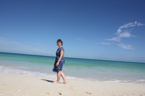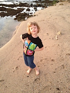 We heard from a reliable source, confirmed by guidebooks, that Lanikai Beach, on the windward side of Oahu, was an ideal place to take kids swimming because the water is extremely calm. And it’s beautiful (although I didn’t find a beach in Hawaii that wasn’t). So one day we headed there, probably later than we should have because everything we do takes longer than we think it’s going to, and on vacation is no exception.
