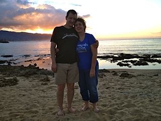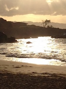 A native Hawaiian, who had grown up with that beach as his backyard playground, officiated and another local serenaded Clint and Joanne and played the ukelele. Zoe sprinkled the flower petals and Mathieu brought up the rings on a little pillow (with some assistance from Rachel). There was kissing, sparkling cider, and coconut cake. But mostly there was sheer joy and sparkling beauty. Randy and Zoe and Caroline and I played in the surf while the photographer took thousands of pictures of Clint and Joanne. It was unforgettable. I am filled with gratitude that we were able to be there to share the moment with Clint and Joanne and our families. Thanks, guys.