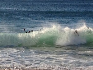 Then we drove from beach to beach in search of surfers in search of waves. Apparently January brings the biggest waves to the North Shore and this attracts skilled surfers or crazy people, or maybe these are one and the same. We didn’t actually see many surfers, but we saw many people bodyboarding on what still seemed like significant waves that would certainly destroy the likes of us. And we basked in these absolutely stunning vistas. This afternoon enough would have justified our whole trip because of the sheer beauty and how it makes your spirit breathe more freely.