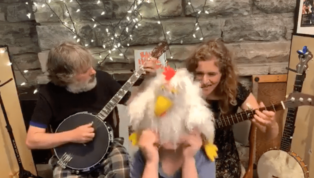 Dar said her set list tonight was put together by her manager Patty, who was celebrating her birthday. So I don’t know if it was Patty or Dar or both of them who were in a particularly contemplative mood when they decided on the songs. With one exception, what Dar played were among her most somber songs. I get it. We’re living in a serious moment. But it was a little surprising because the other live-from-home concerts we’ve seen have been a bit more buoyant and reminiscent of a regular live show in terms of the variety of music. Béla Fleck and Abigail Washburn‘s Friday night Banjo House Lockdown tends to be particularly joyful and lighthearted as their sons–seven-year-old Juno and two-year-old Theo are often participants. Last week Juno jumped in front of the camera and began to dance, wearing a chicken hat, during one of the songs. Some of the Indigo Girls‘ shows from home were performances of entire albums. Similarly, Brandi Carlile is doing a series with her band where they perform each of her albums (tune in June 14 @ 9pm for Firewatcher’s Daughter).
