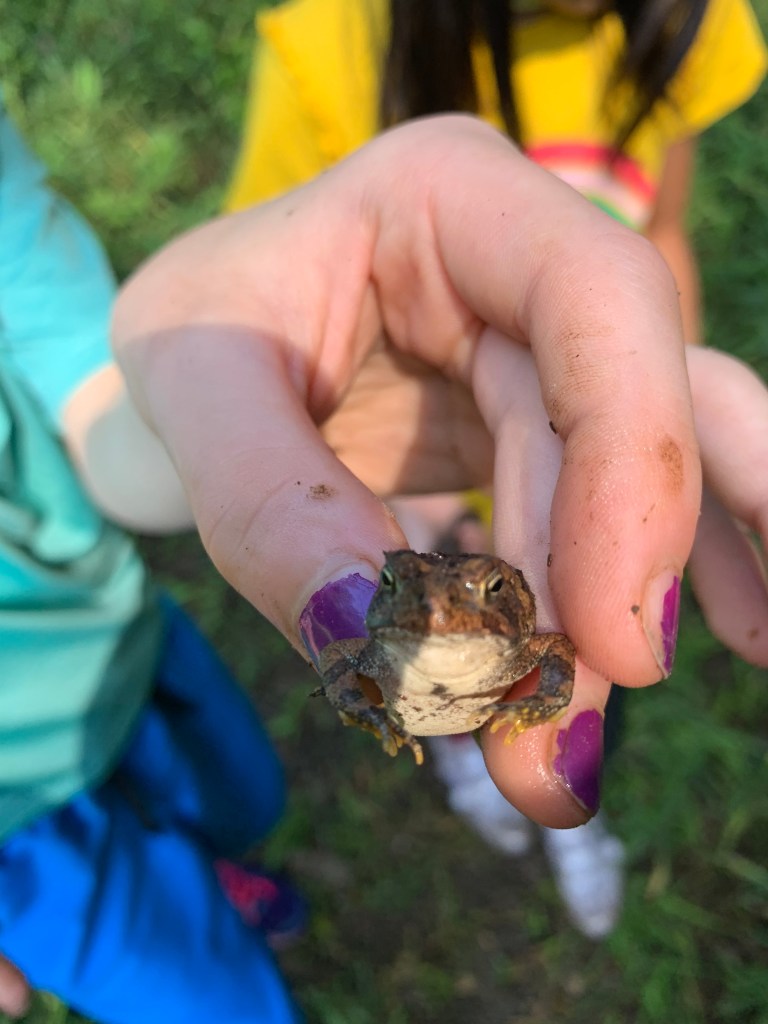 In the end, his love of animals won out over his distaste for getting dirty. Zeke’s sixth camp of the summer was Native Animal Explorers, run by an organization called Fish and Explore. He spent every day wading knee-deep into creeks and streams and marshes, climbing over rocks, and making himself at home in the woods. He found hellgrammites and velvet mites (both of which I had to look up) and crayfish and tiny toads. He said he spent a whole day with another camper who had sharp eyes—she would spot the toads and he would catch them. He said he has quick hands. He held (non-venomous) snakes that the counselors found. He let little caterpillars crawl around on his hands. One caterpillar reportedly pooped on Zeke three times. He and his fellow campers named some of the crayfish—Big Daddy, Big Boy, Tiny Tim, Tiny Guy—you sense a theme? Zeke reported that getting pinched by a crayfish did not really hurt. The day they explored the Billy Goat Trail he came home with scrapes all over his legs. He did not complain. And this is a boy who is sensitive to pain and most minor injuries.