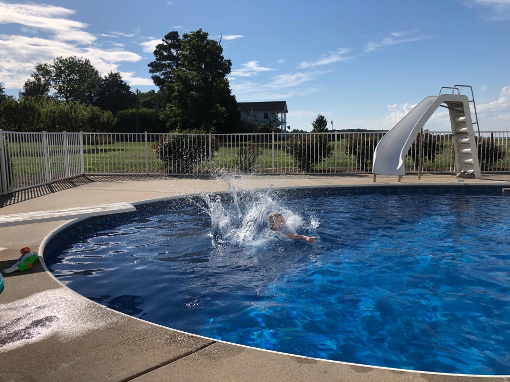 The kids spent most of their time happily splashing in the pool. They invented names for their original dives and slid down the waterslide. The boys made up elaborate games in and out of the pool involving Harry Potter and dragons and superpowers. They read comic books that I bought for them on that trip to Walmart, and drew pictures and ate snacks. My brother-in-law cooked delicious dinners every night and spent hours picking crabs he had bought from a fisherman just down the road from our house so we could eat them fresh. We relished the opportunity to play with my baby nephew, finding new ways to make him smile and laugh and watching him explore the world and discover new skills every day. We played games after the little kids were in bed, at least whoever among us hadn’t fallen asleep while putting the little kids to bed. We made tie-dye shirts and bandanas, which was messy and fun. My brother-in-law took the boys fishing and they were unexpectedly patient and they each caught a fish! We dealt with bug bites and a bee sting and some sunscreen that melted into our eyes but we were ok. We ate popsicles and drank wine. It was good to be away from here.